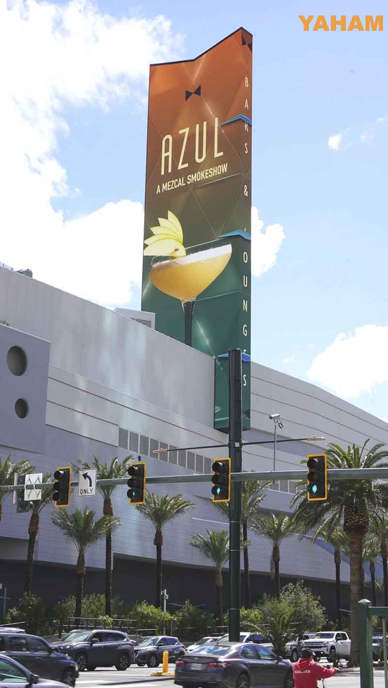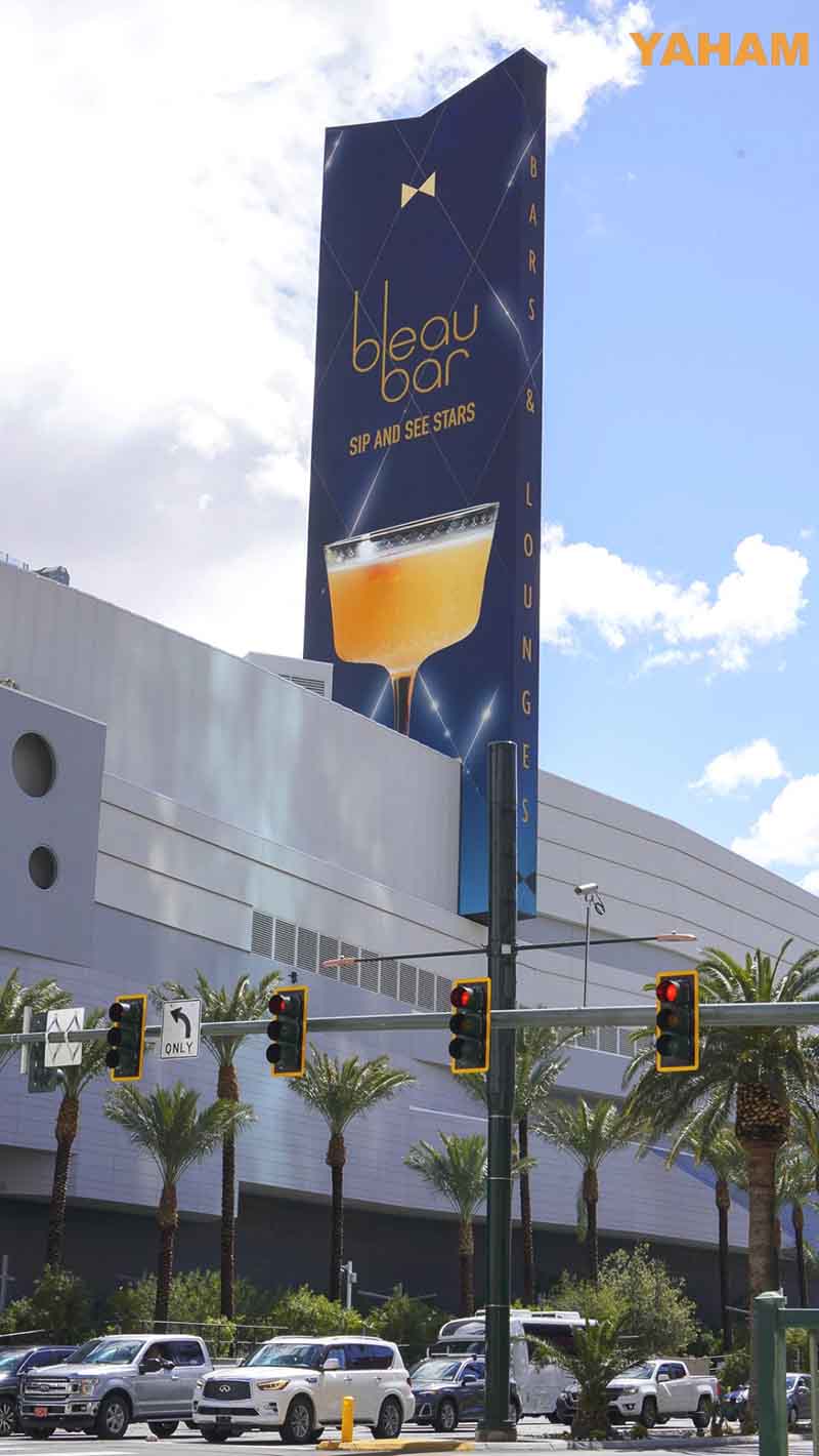 Boasting almost 15,000-square-foot total size, it features the Fontainebleau’s signature bowtie logo on the top and two customized-angle corners for a complete seamless wrap-around three-sided display.